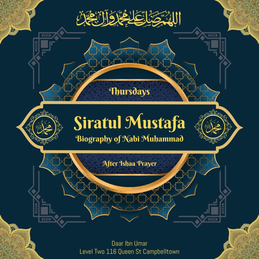 We are pleased to invite you to our *Seeratul Mustafa* sessions, beginning **April 17 after Ishaa (7:30pm)** and continuing **every Thursday from 8:00pm to 9:00pm during the Madrasah term**.